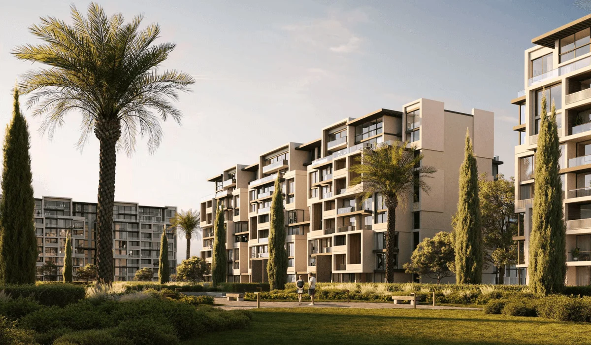 7. مساحات خضراء واسعة: الكمبوند فيه حدائق وبحيرات صناعية وممرات مشجرة عشان تخلي البيئة هادية ومريحة للعائلات والأطفال.