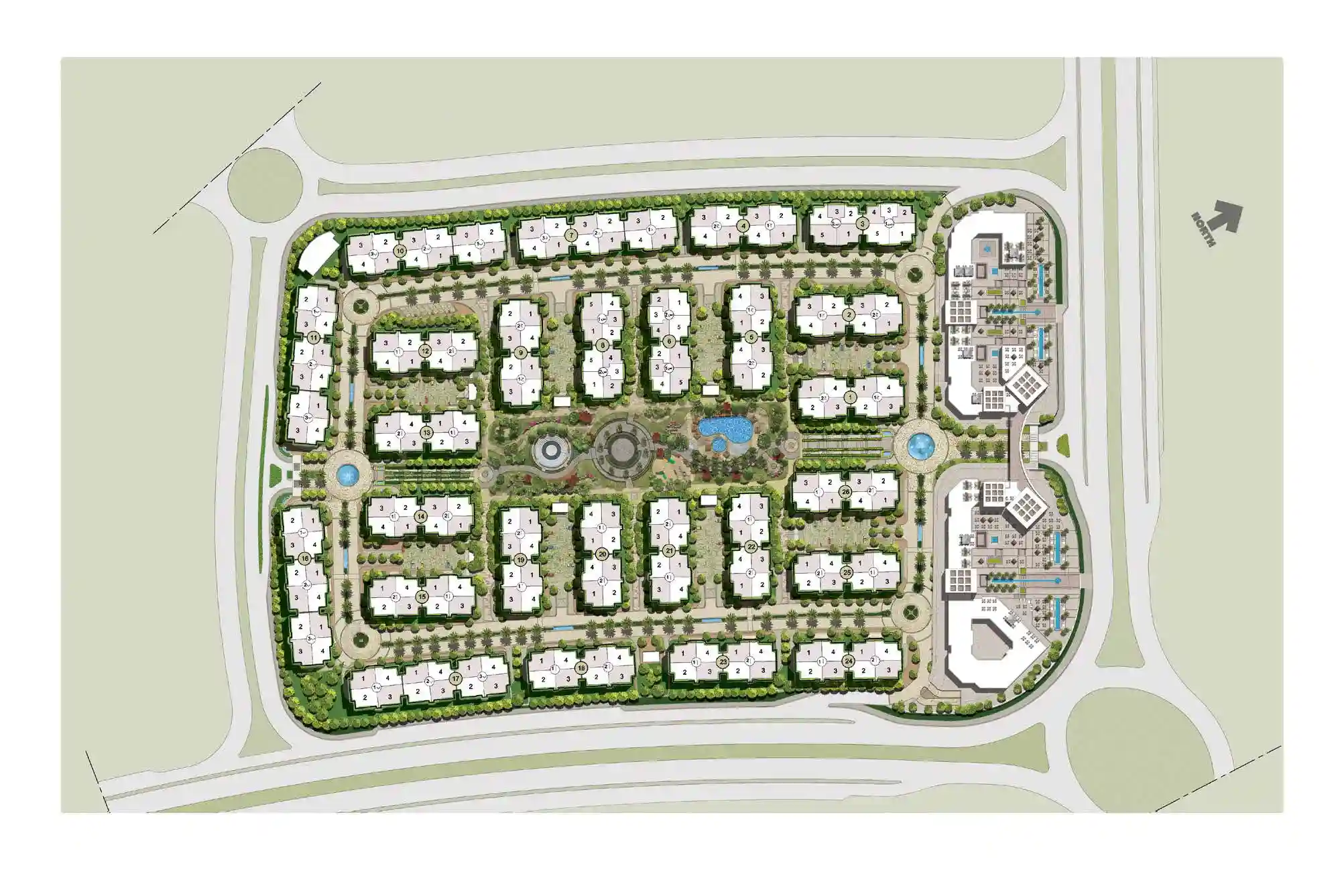 - حديقة مركزية: بمساحة 8200 متر مربع لإعطاء الكمبوند متنفس طبيعي ومناظر راقية.